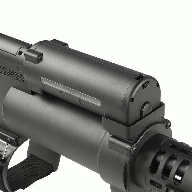 円筒型の専用マガジンの装弾数は1200発となっています。