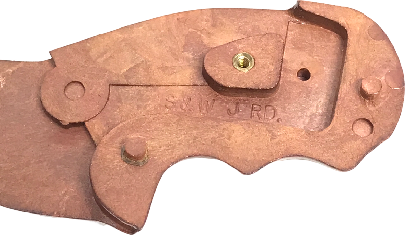 [サファリランド] ロジャース ファイティンググリップ ハーフチェッカー (中古) 裏側の刻印 少し見えづらいですが「S&WJRD」の刻印あります。