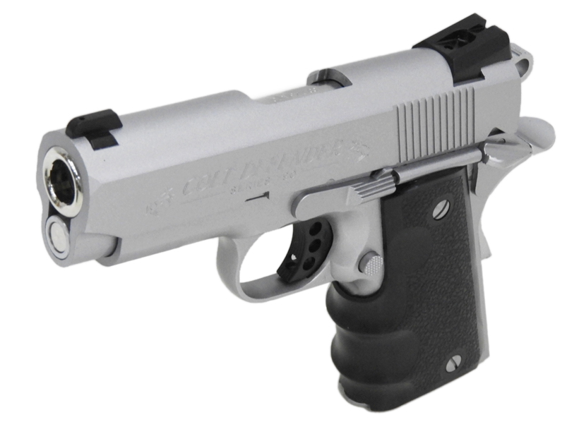 シリーズ90としてコルト社が発売したコンパクト45オートです。同社のオフィサーズ(3.5インチ)よりも更に小型化(3インチ)されており、ステンレス製のスライドと軽量アルミ合金製フレームで構成されている。