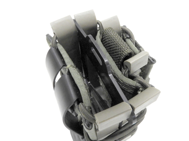 メーカー独自のMOLLEクリップが背面に付属し、ベルトパッドやチェストリグ、プレートキャリアなどPALS対応の各種装備に接続OK。