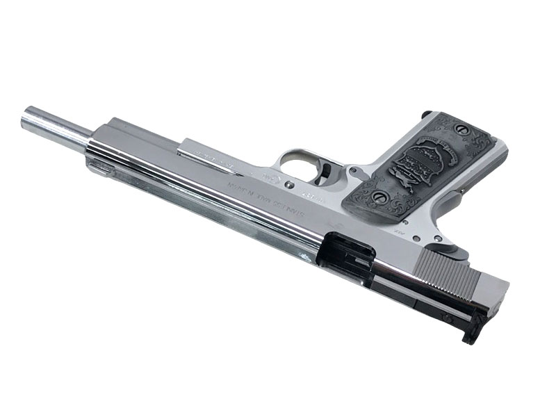 WAよりマグナブローバックシステムの提供を受けMGCが生み出した「AMT ハードボーラー」。スライドにクロームメッキが施され、鏡面仕上げが美しいモデル。リアルなブローバックアクションと、MGCならではの精緻な造形美を同時に楽しめる、魅力あふれる逸品。