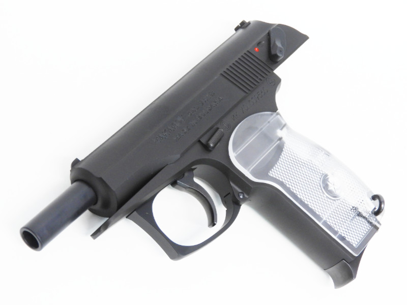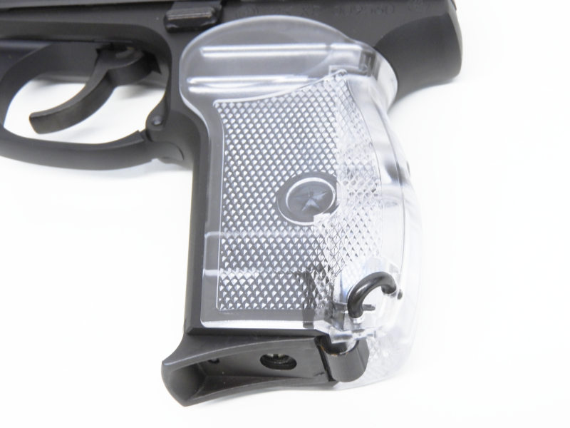 最大の見所は、マガジンサイドから覗く「カートリッジ」を鏡面ステッカーで再現し、それが透けて見えるスケルトン仕様のグリップで、往年の「ASP」ピストルのようなガジェット感が楽しめます。また、残弾表示はダミーながらガス容量自体は変わらないので、システム7による快調作動は健在です。