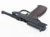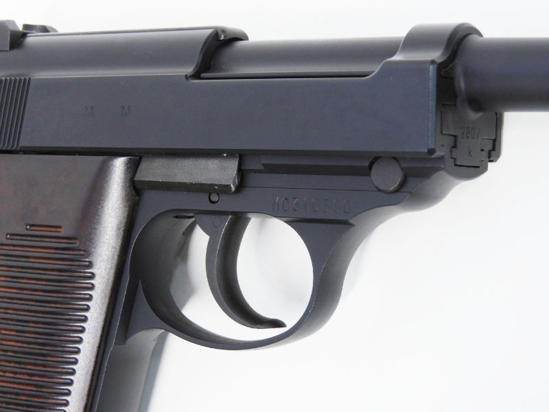 ワルサー社正式契約モデルなのでスライドにはその刻印が堂々と入っている。可動部分は実銃とほぼ変わらず、マニュアルセフティやトリガーセフティ、コッキングインジケータ、デコッキングなど完全に再現されている。