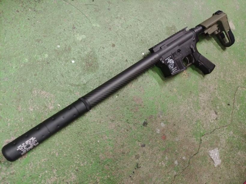 [戦民思想] AR系電動ガン用 カーボン製 スムースハンドガード ガーフィッシュ 10インチ (新品取寄) 製品参考画像2 バレルナットネジピッチ:1.5mm(電動ガン規格)