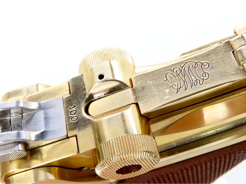 22金メッキ金属(亜鉛合金)製モデル、プラスチック製グリップが装着されている。