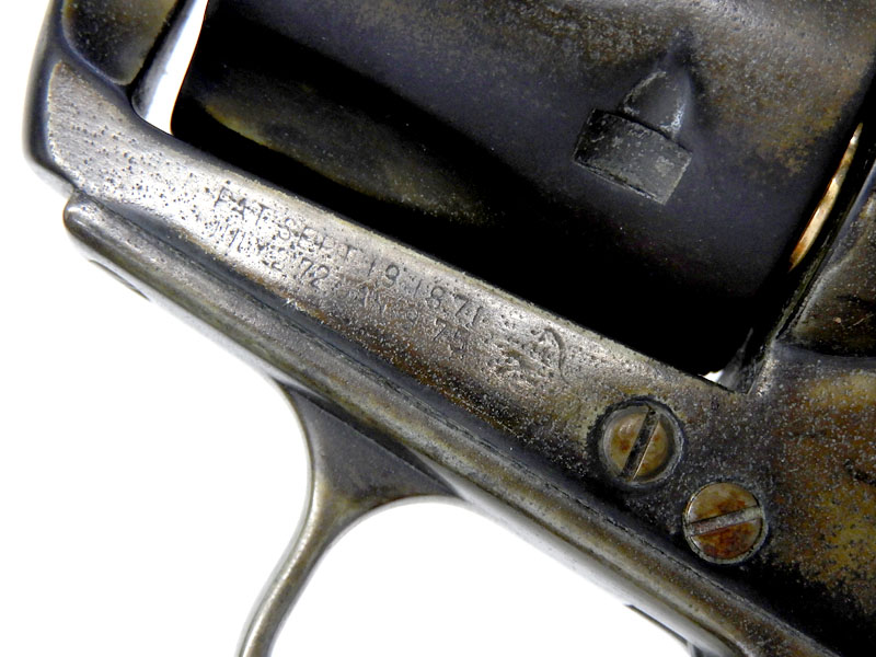 [ハドソン] コルト SAA ピースメーカー  3インチ シェリフズ バードヘッド 木製グリップ付き シリンダー僅かにズレ (訳あり) 製品詳細画像3 うっすらとではありますが刻印も確認できます