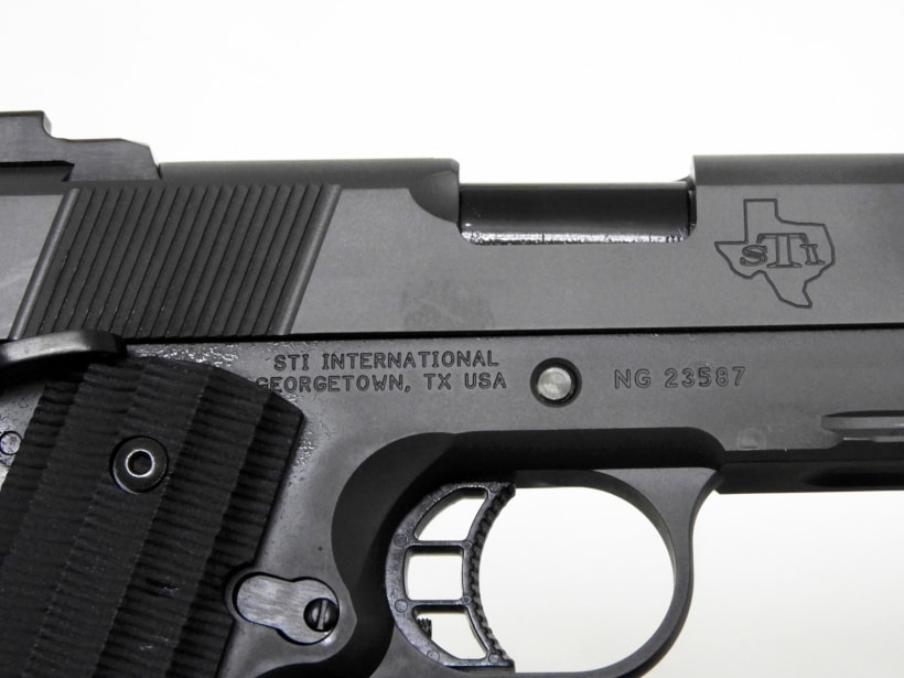 サイティングした際の光の乱反射を防ぐ工夫がなされた上面のフラットトップ加工や、右側面に刻まれているテキサス州のマップを図案化したSTIのロゴに至るまで、これら全ては機械加工で再現された贅沢な仕上がりとなっています。