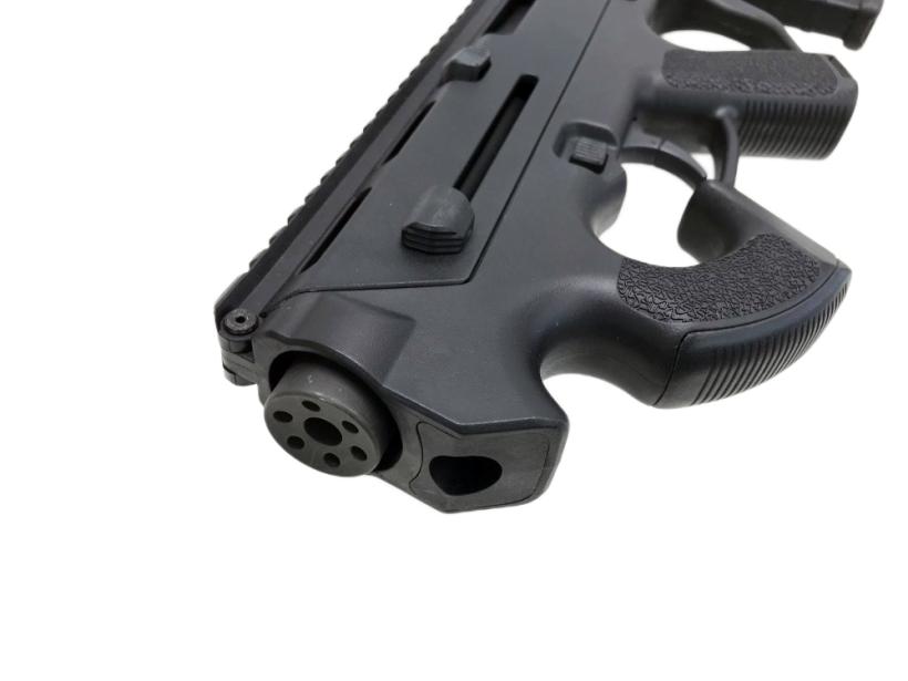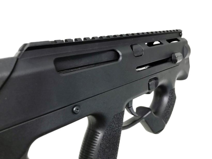 機関部をストック内部にレイアウトするブルパップデザインにより、コンパクトながら十分な銃身長を確保。