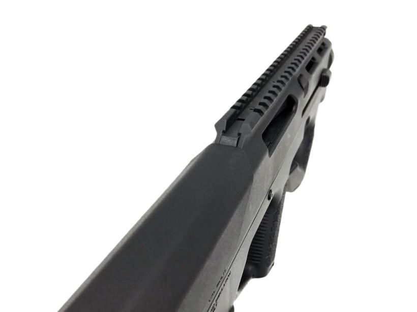 ポリマー製のレシーバー上部には20mmレイルが一体成型され、各種光学機器の搭載が可能です。