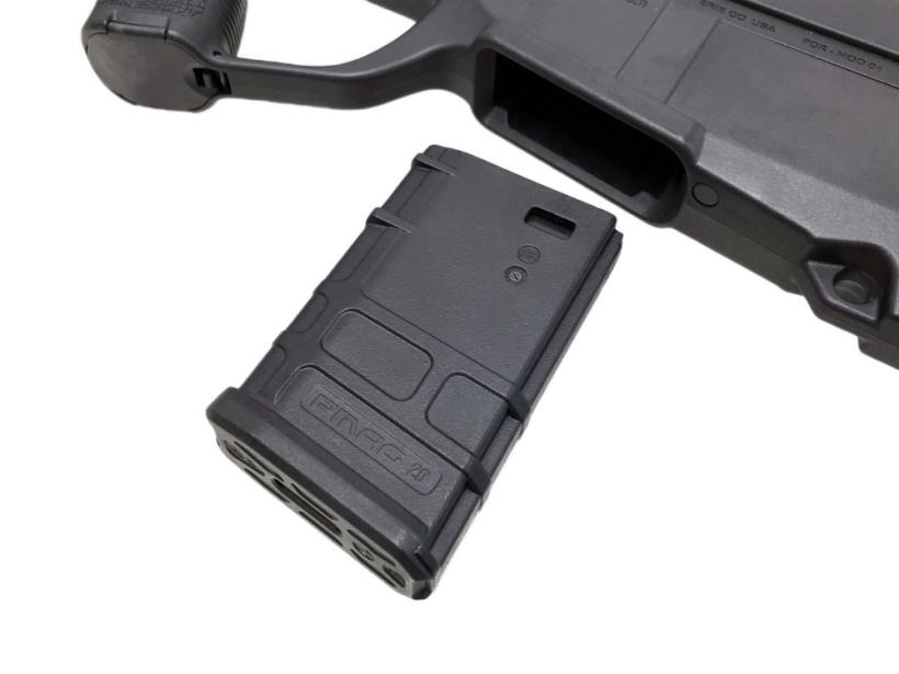 マガジンはスタンダード電動M4系が使用出来る為MAGPUL PTS製P-MAG/EMAGを始め、各社従来型電動ガンM4シリーズ用を使用可能。