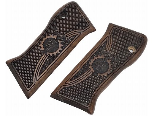 [実銃用] IMI JERICHO ウッドチェッカーグリップ ハドソンジェリコ適合品 (中古) (中古)
