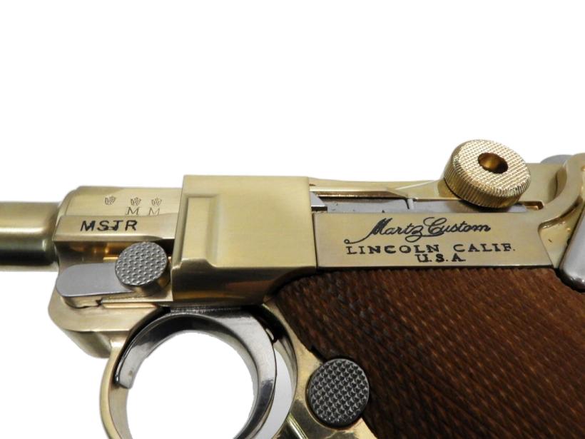 P38とP08専門のガンスミス「ジョン・マーツ」氏による「マーツ・カスタム」をマルシンをベースにHWSがカスタム、再現したモデル。「マーツ・カスタム」の特徴であるMSTR(マーツ・セルフ・トグル・リリース)システムを見事に再現しており、ホールドオープン後にセーフティレバーを下げるとトグルが前進する。また、刻印はロッキングボルト上の「MSTR」、トリガープレートを外した所に「JVM」、グリップ上の「MartzCustom LINCOLN CALIF. U.S.A.」など実銃を元にした細やかな刻印も再現しており、John Martz氏の公認だからこそできる完全再現がここにある。