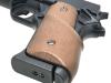 慣れた握り位置で瞬時にかま えられる独自形状のカスタム グリップは、ウッドグリップの質感 を再現するために東京マルイ では初となる特殊技法を採用