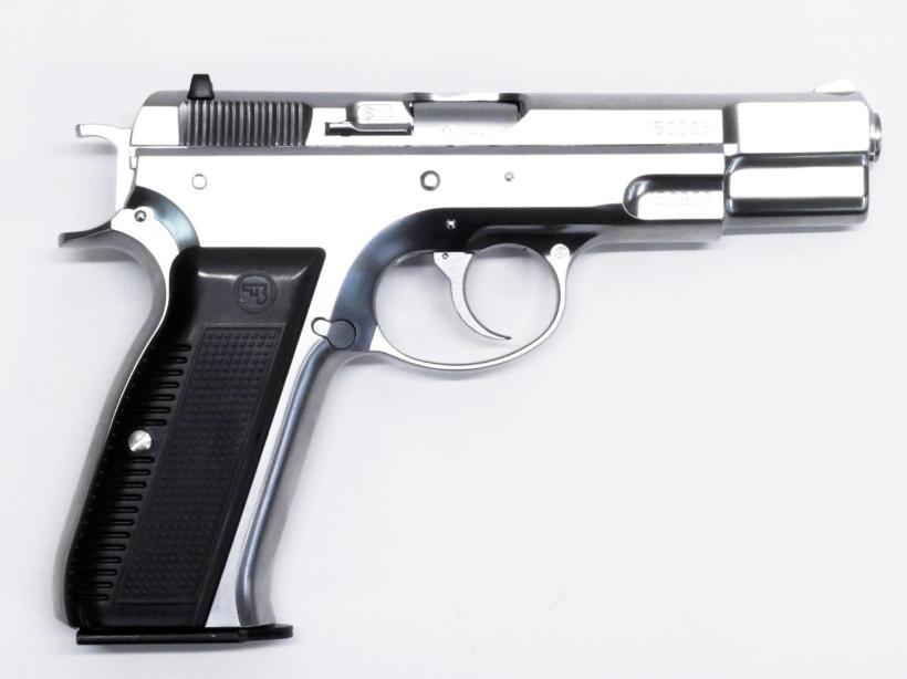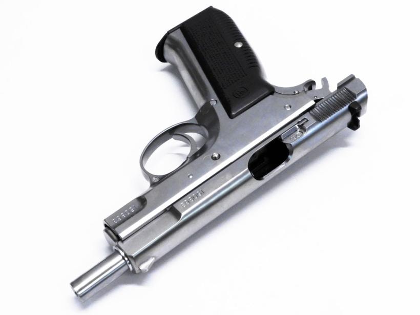 ガス圧で装填、排莢を行う、夢のリアルアクション! CZ75 カートリッジ排莢モデル!シルバーABS?