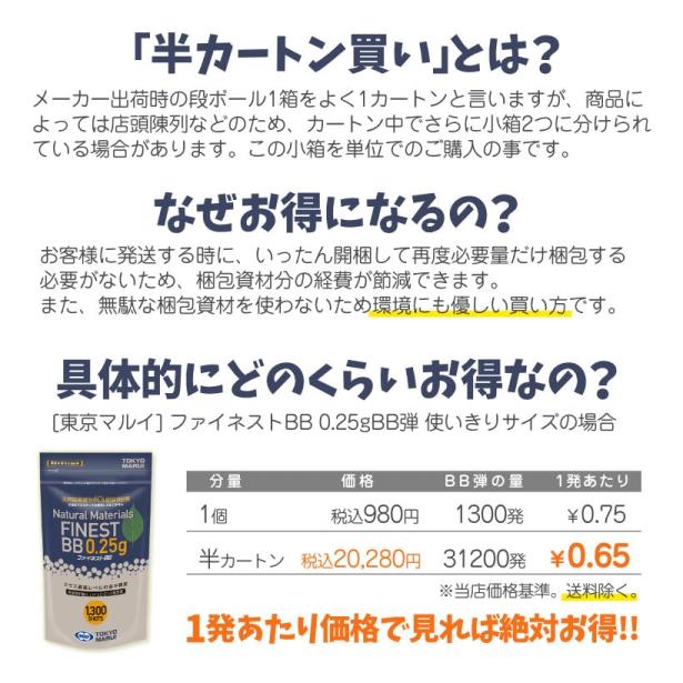 BB弾やガスなどの消耗品は、梱包にかかる資材も減って環境にも優しいカートン買いがオススメです。