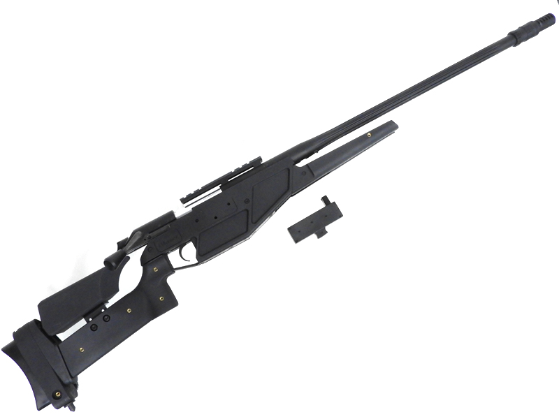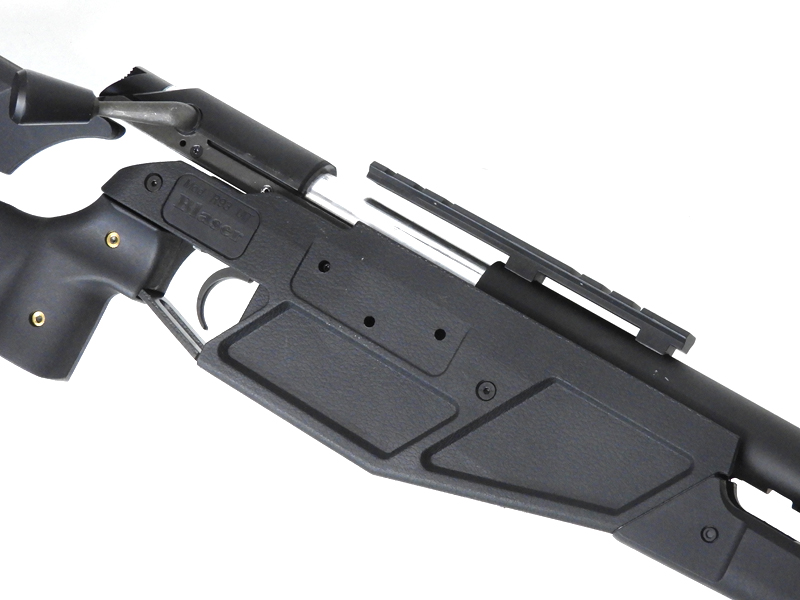 独特のボルト操作メカとスタイルで人気のある、ブレイザーR93を再現したボルトアクションエアコッキングガン。