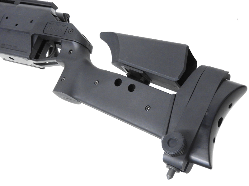 何よりもまず目に付くのはこの近未来的な外観だが、競技用ライフルの発展型なだけあって各部考え尽くされた設計となっている。最も素晴らしいのはボルトアクション時にボルトハンドルを回転させる必要がない画期的なシステム「ストレートアクション」で、ボルトアクションでこれほどの速射が出来る感覚はちょっとクセになりそうだ。