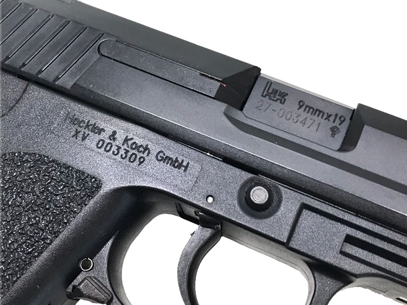 コンパクトなUSPです。フルサイズのUSP同様焼結成形金属パーツを多用しているのでリアルさがよく出ています。
