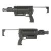 ピストルグリップとキャリングハンドルに代わり、ガングリップとアームブレイスを採用することで腕と手で安定した保持が可能に。