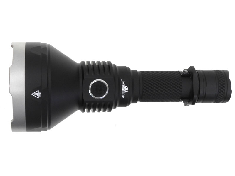 ACEBEAM T27は、CREE XHP35 HI LEDを搭載し、最大2500ルーメンの明るさと1180mの超長距離照射を実現するフラッシュライトである。70mm径の大型ターボヘッドにより遠距離性能が強化され、IMR21700型電池で高出力と長時間使用を可能にしている。