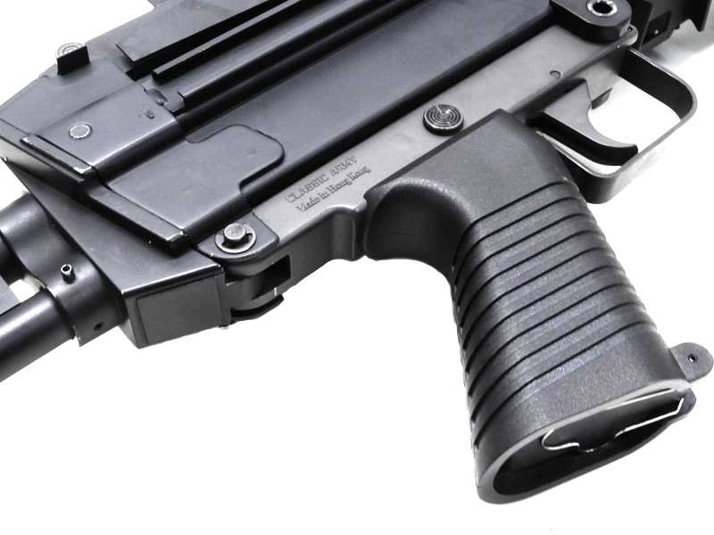 海外メーカーの老舗であるClassic Armyは、MINIMIシリーズをいち早く電動ガン化したパイオニア的存在だ。今回はシリーズの中でもシンプルなデザインが特徴のMk1に注目する。アクセサリーレールのない一体型ハンドガード、伸縮式バイポッド、SAWタイプのグリップ、パイプ構造の固定ストックなど、初期型Mk1のスタイルを忠実に再現。これは自衛隊仕様のベースモデルにもなったデザインだ。発射モードは実銃と同様、フルオートオンリー。さらに、M4用スタンダード電動ガンマガジンとの互換性も備えている。