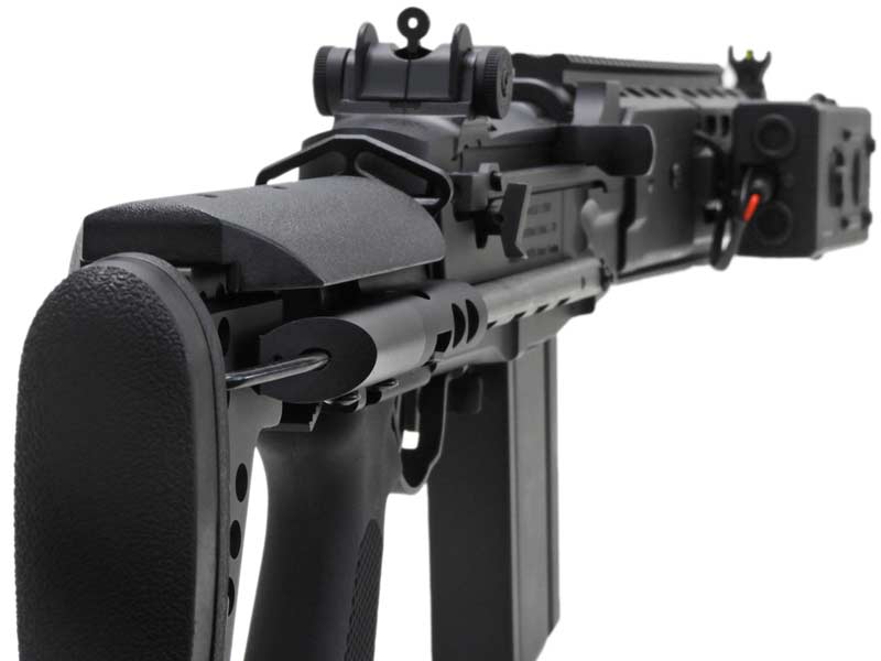 EBR特有のRISフロントをフルメタルで再現し、高い耐久性と剛性を確保。バイポッド、バーチカルフォアグリップ、フラッシュライト、レーザーサイト、ウェポンカメラなど多彩なアクセサリーの装着にも対応しています。さらに、金属製メカボックスを採用しているため、内部カスタマイズや性能アップグレードも可能です。精悍なブラック仕上げによるリアルな外観も相まって、所有欲を満たす完成度の高い一丁となっています。