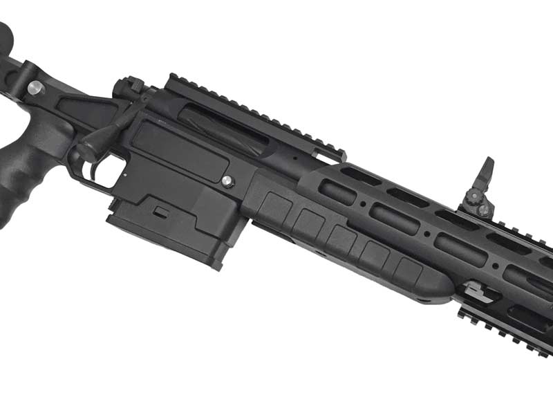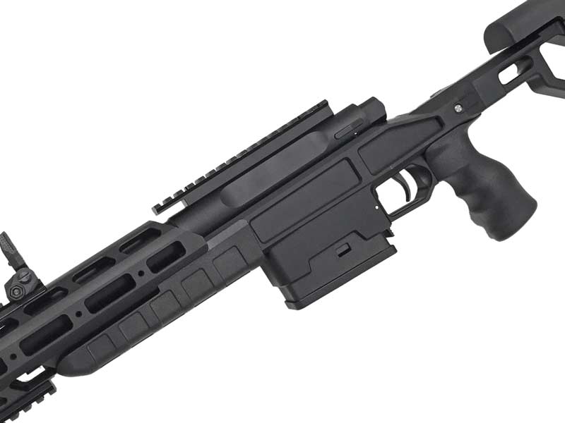 ロシアORSIS社の高精度スナイパーライフルT-5000をモデルにHephaestusがエアコッキングガンとして再現。6061-T6アルミ合金やスチール素材を多用し、高い剛性とリアルな外観を実現。CNC加工パーツと独自設計のTDCホップにより射撃精度も追求。マガジンは専用品。折り畳みストック、ボルトロック、インジケーターなど実銃を意識したギミックも搭載。国内法準拠の0.989J以下。