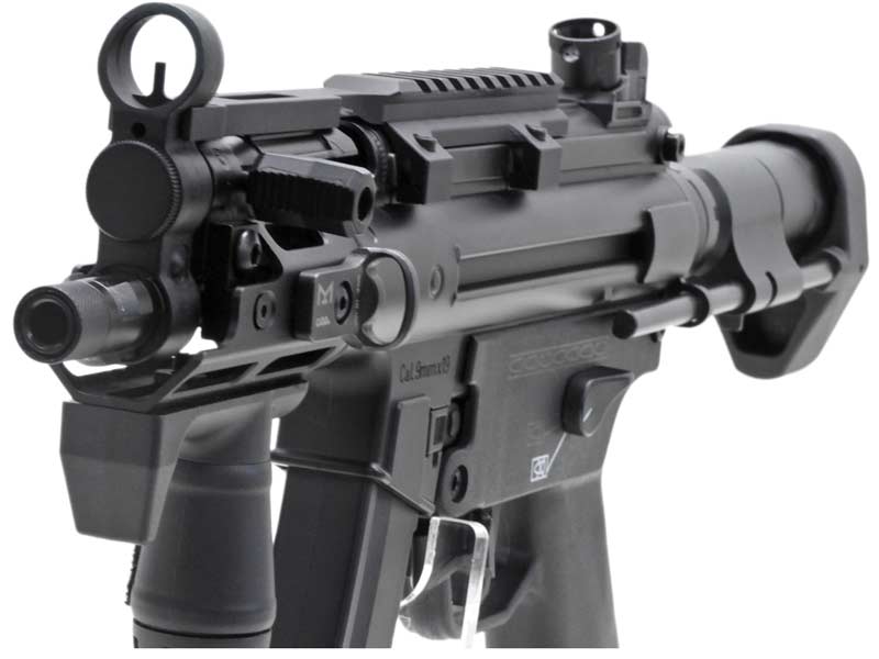 また、ストックはサイドフォールディングからトレンド感のあるワイヤーストックへとアップデート。電子トリガーシステム(ETU)も搭載し、レスポンスの良さが強化されている。マズルは14mm逆ネジ対応でサプレッサーなどの装着も容易だ。