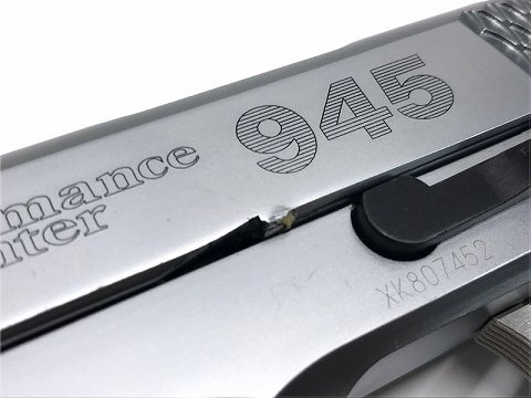 [KSC] M945 compact 3インチ シルバー ガスブローバック ノッチ痛み有り (訳あり) 製品詳細画像 ノッチ傷部分