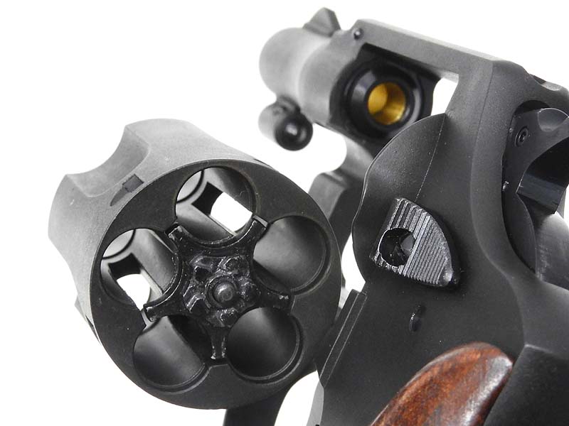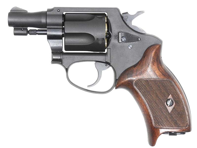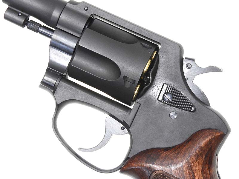 [マルシン] ポリスリボルバー 2インチ 51ミリ銃身 ブラックHW ハーフチェッカー木製グリップ仕様 Xカートリッジ 6mmBB (中古)の販売ページ|エアガン.jp