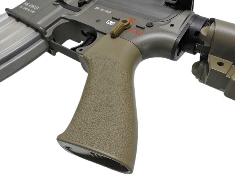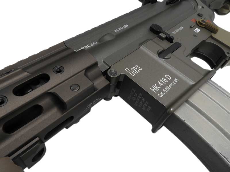 本物同様に、各部に施されたタンカラーの色調の違いを再現。金属製のハンドガードは、耐擦過性に優れたアルマイト処理によって色を再現しています。