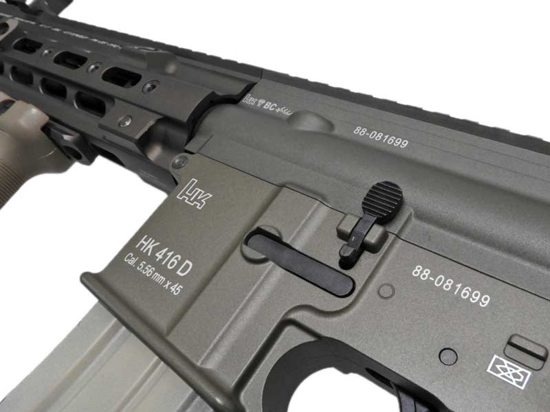 左右どちらの手でも操作できるアンビセレクターや、トリガーガードの開閉機能など、HK416Dならではのギミックをデルタカスタムにも反映。また、クレーンタイプ・ストックは長さを6段階に調整可能です。