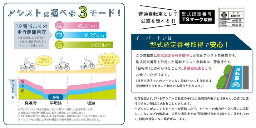■走行距離:低モード約30km、中モード約25km、高モード約20km