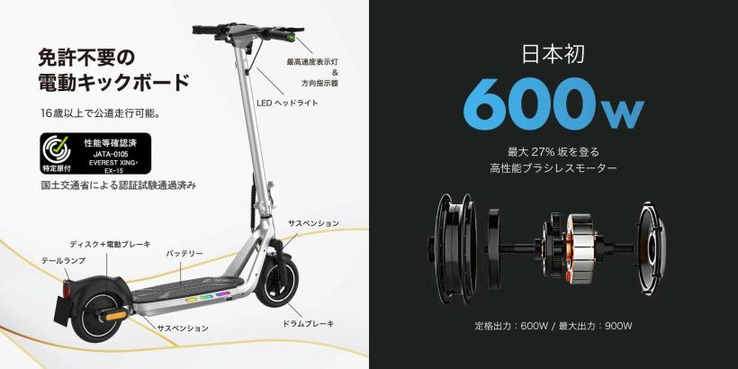 業界最強600Wモーターのパワフルな電動キックボード。Bluetooth アプリコントロールを搭載!