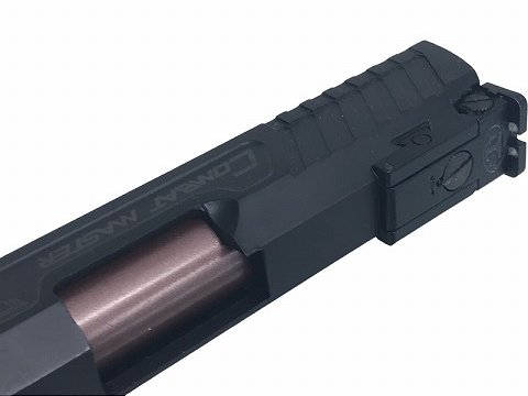 マルイ対応の樹脂製スライド 内部一式 TTI コンバットマスター。フロントサイトがアウターバレルと共に稼働するアイランドバレル型。