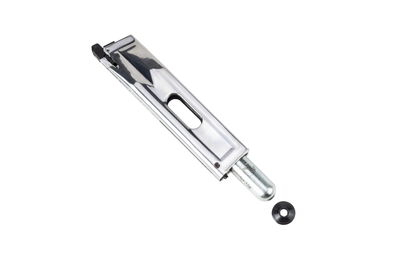 2011 CO2 ロングマガジン。装弾数 : 31発。セミロングマガジンとなりCO2カートリッジ位置を下げることで気化室を拡大し、連射時の安定性が向上(CO2の冷えを抑制)。CO2 カートリッジベースカバーは6角タイプ。