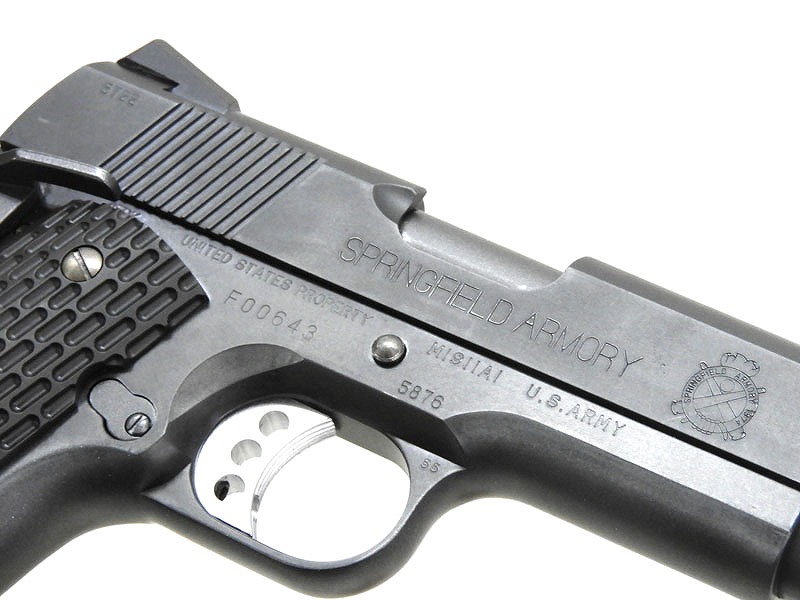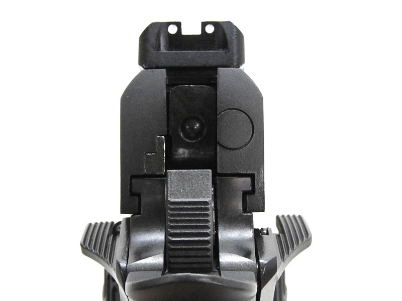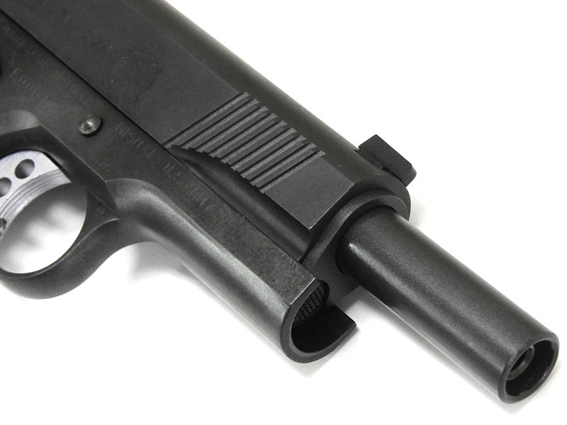 最初期のMEUピストルからフロントセレーションの追加やノバックサイトの搭載など、印象的な変更がなされた中期モデル。この後さらに細かな変更が加えられたレイトモデルがトイガンでは主流なだけに、貴重なこのミッドモデルはスライド後方のナンバー刻印などが味わい深い。