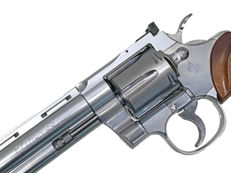 輝きを放つニッケルフィニッシュとは対極に位置する、傷や汚れを気にせず撃てる実用的で人気のパイソンがRモデルガスガンで登場!