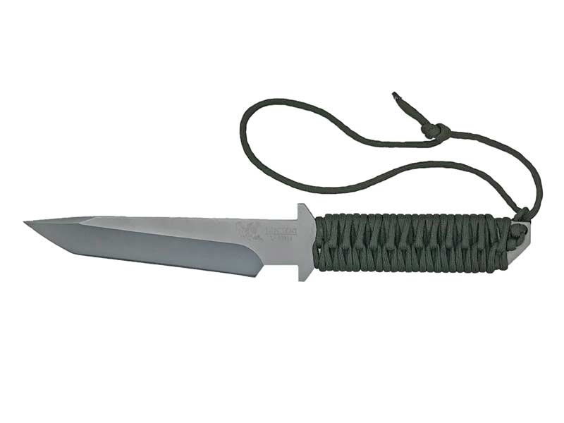 ハンドル部分はグリーンのパラコードで巻かれており、手にしっかりフィットし、 grip(グリップ)を高めるとともに、アウトドアシーンでの使い勝手も向上します。