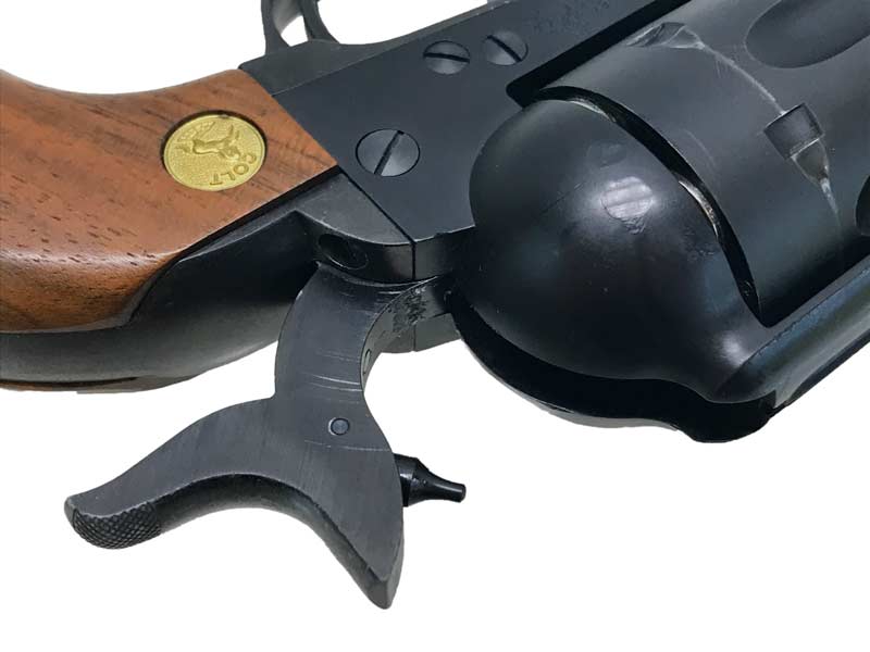 1999年に発売されたPEGASAS(ペガサス)システムリボルバーの第一弾がこのSAAでした。2005年にはデタッチャブルシリンダーモデルとしてマイナーチェンジされ、さらに進化は留まることなく「高耐久で更にリアルにそしてサバイバルゲームやファストドロウでも使用できる性能を備える」をコンセプトに開発された“PEGASAS2”(ペガサスツー)がついに発売されました。