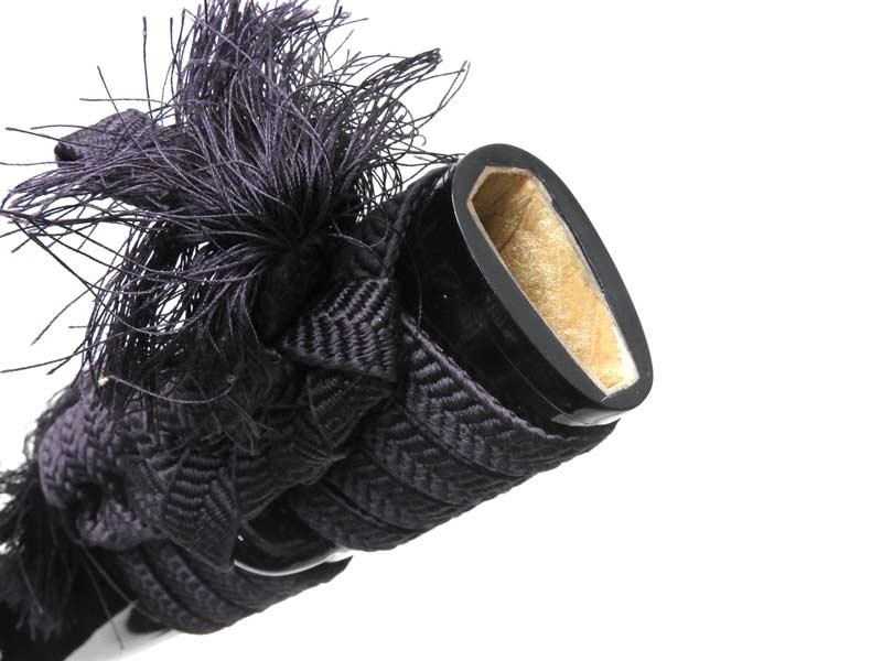 柄巻と下げ緒にあっては滅紫色の美しくも深い紫で巻かれており、神秘的な雰囲気を併せ持つ一振りになっている。