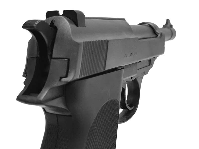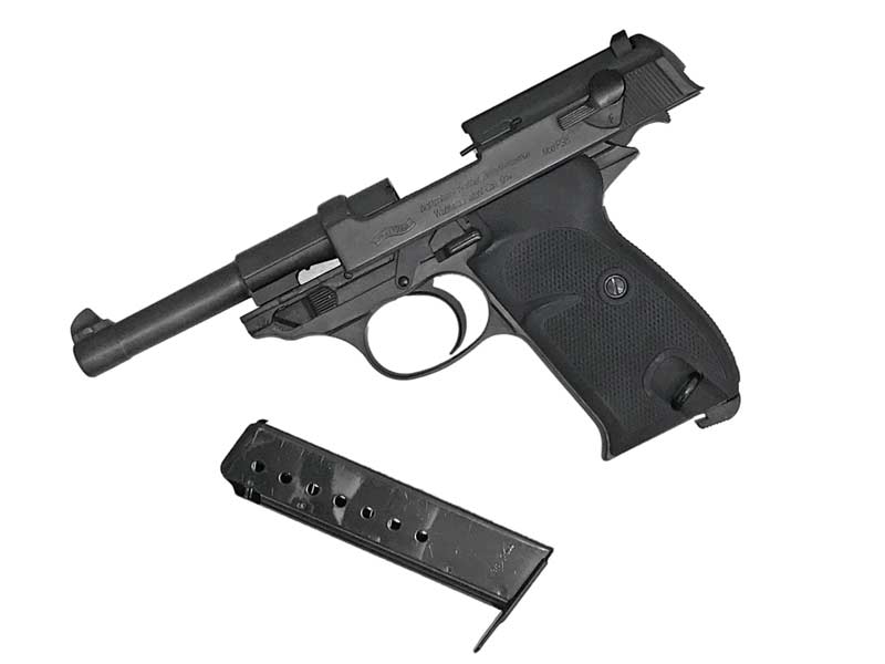 ドイツ・ワルサー社より10枚余の図面の提供を受け製作しリアルに再現されている。ワルサー社正式契約モデルガン。P・F・C発火モデル。エクセレントHWモデル。標準でカートリッジ8発が付属。