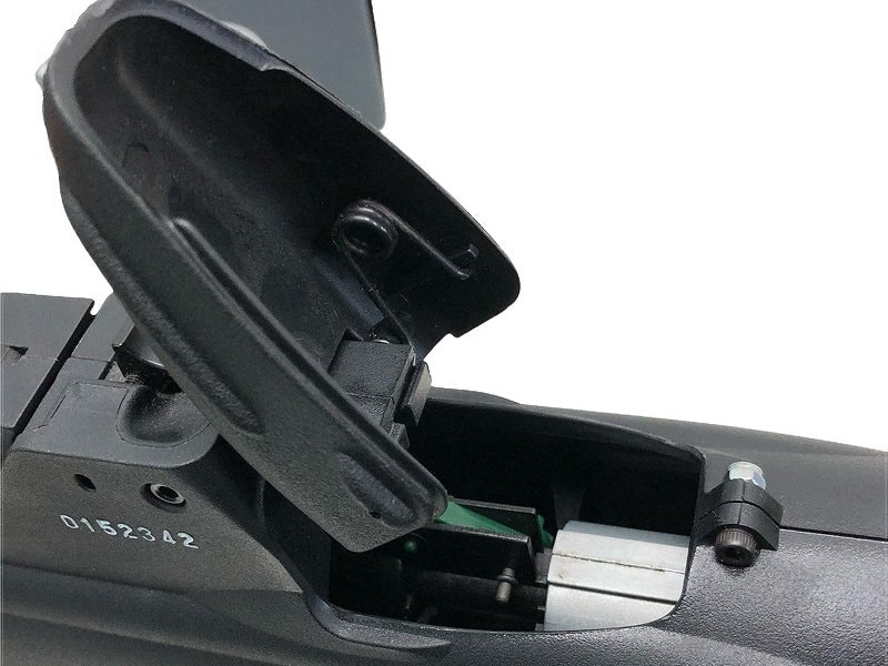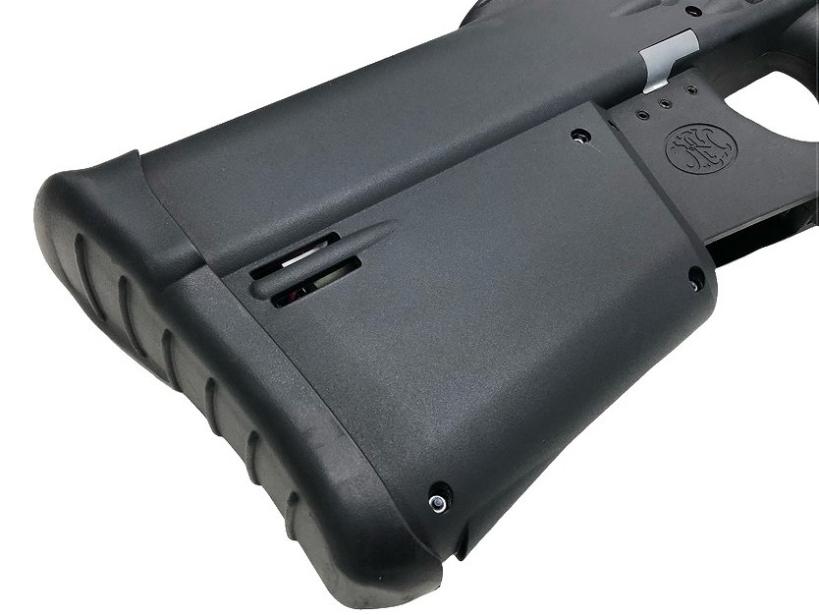 カッチリとした造りの頑丈な樹脂製ボディは構えた時の不安を生じさせず、安定した運用が可能。