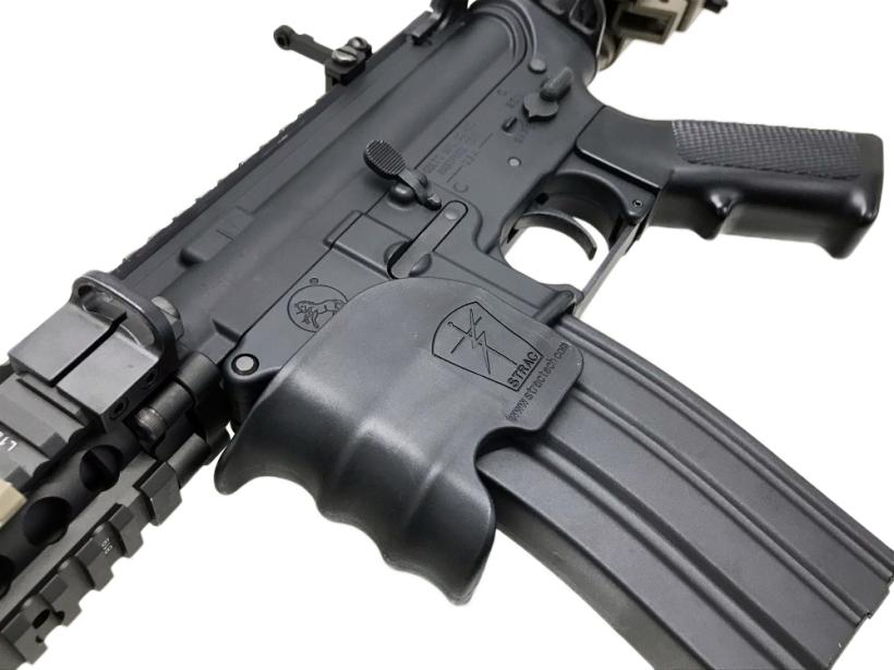 スリング用パーツ標準装備:レイルハンドガードに取り付けるフロントスリングアダプターと、ストック基部のリアスリングプレートを標準装備。別売のスリングベルトを装着することで、エアソフトガンの重さを両手だけでなく肩でも支えることができます。