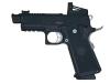 チャンバーも含め全体に設けられたフルートが印象的なアウターバレル、セレーションやトップ面の特徴的なスライドなど、標準モデルの魅力はそのままに、アウターバレル先端にコンペンセイター、スライドには SHIELD RMS タイプのオープンドットサイトが搭載されたコンプリートモデル。