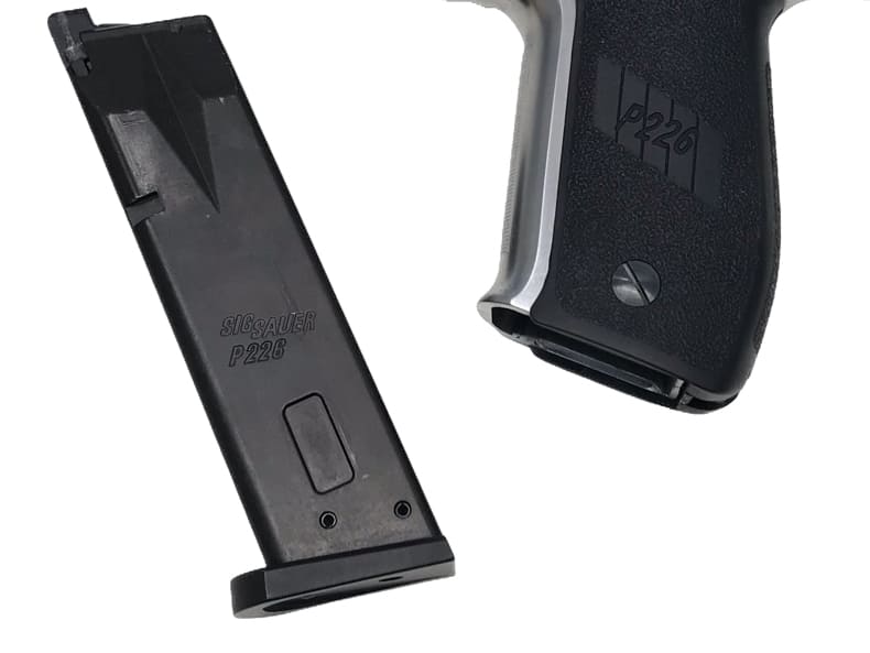 シグザウエル社によって製作された、9ミリパラベラム弾を使用する中型オートピストル。P226は、P220の改良モデル。最大の改良は、ダブルカラムマガジンに変更することで、装弾数を増やした。また耐久力に優れ、水にも強い。すばらしい性能から軍・警察関係のエキスパートたちに“ワンダー9”(驚異の9)と呼ばれた。コルトガバメントの次期米軍正式採用銃の候補として最後までベレッタM92Fと戦った。SEAL(アメリカ海軍特殊部隊)・FBI・SAS(イギリス特殊部隊)にて制式採用。