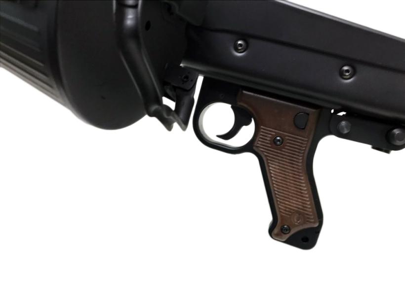 フルメタルで忠実に再現すると12kgほどになってしまうMG42を、フロント部とフレームをそれぞれ一体型アルミプレス成型とすることで、7kg台まで軽量化!