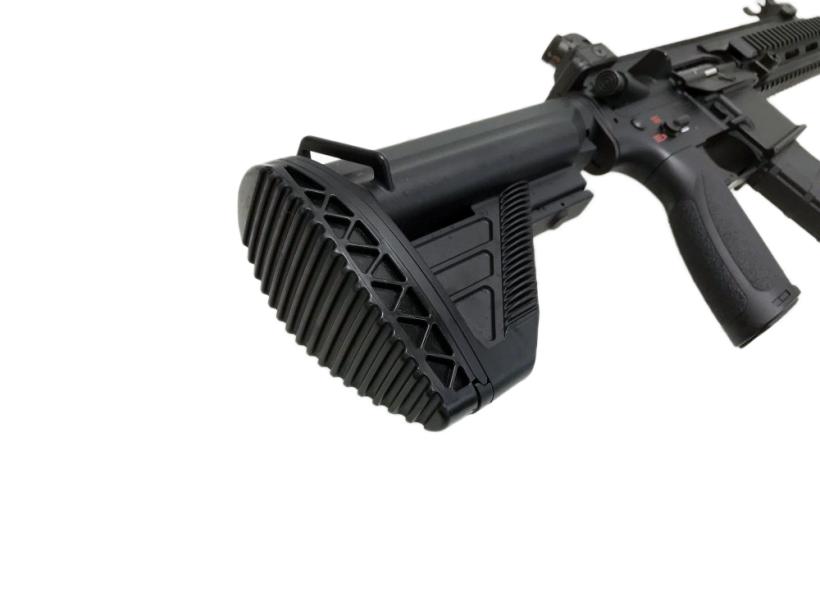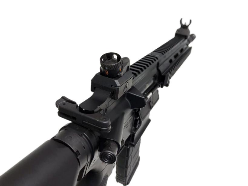 実銃の HK416D を忠実に再現した外観と、優れた射撃性能、更にシュート&リコイルエンジン搭載で電動ガンながらガスブローバックのようなアクションのほか、オートストップ機能もついているので弾切れになったら弾の装填されたマガジンにチェンジしボルトストップを操作すると再び発射可能になる、実銃のようなアクションが楽しめる本格電動エアソフトになっています。また、多様なオプションパーツに対応しているため、自分だけのカスタムガンを作ることができます。これからエアソフトガンを始める方にも、上級者の方にもおすすめの電動ガンとなっています。