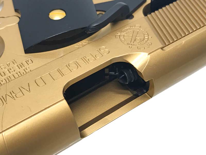 ヘビーウエイト樹脂製の重量級ボディに、ゴールドカラーのブロンズフィニッシュを施したのみならず、NEWリアサイト&NEWトリガー、NEWドラゴングリップといった数々の魅惑的なフィーチャーを搭載し、「WA フェイスオフ1911」登場です。