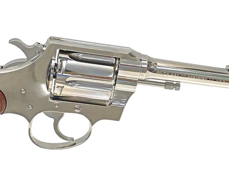 現在では実銃もステンレス素材が主流になり、清掃の面倒さからかわざわざニッケルメッキを施工した銃は希少に。